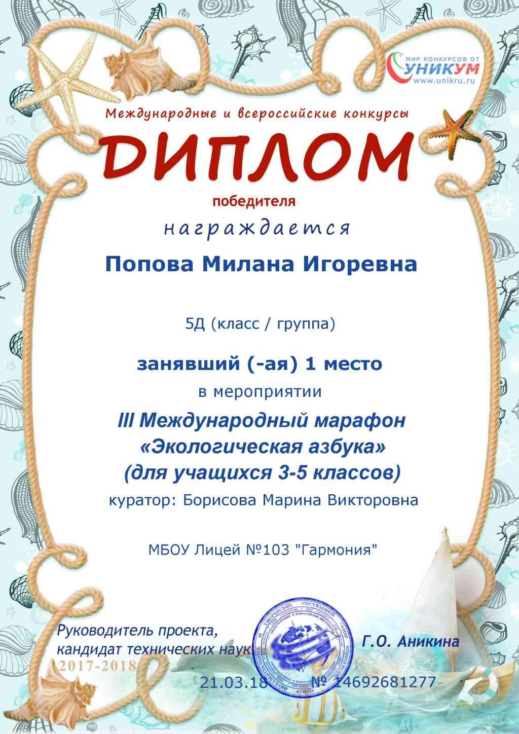 Поздравляем Борисову Марину Викторовну и её воспитанницу Попову Милану (учащуюся 5Д) с победой в двух международных конкурсах.