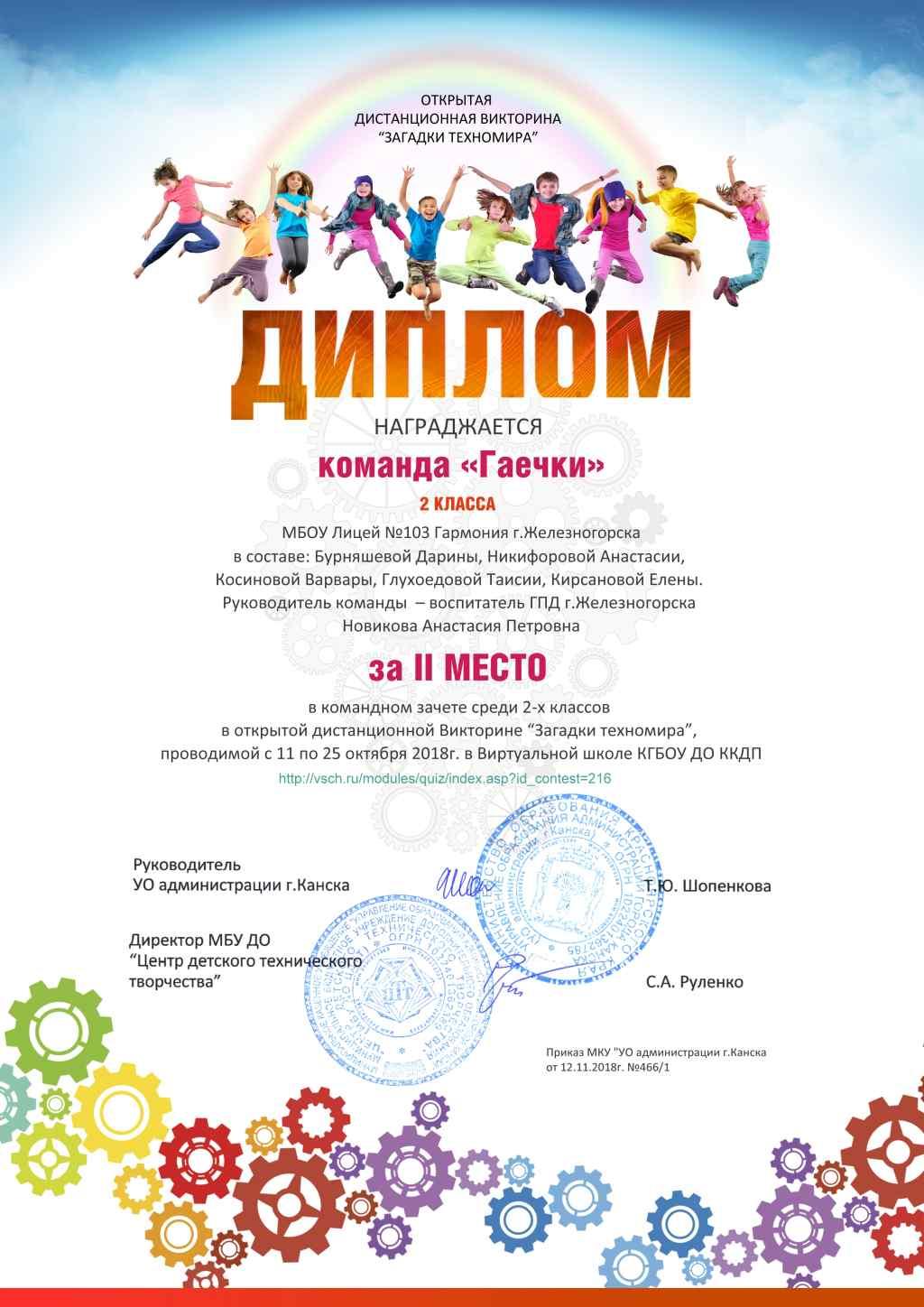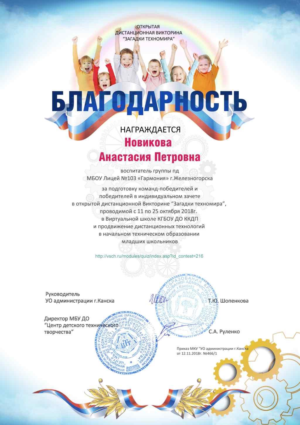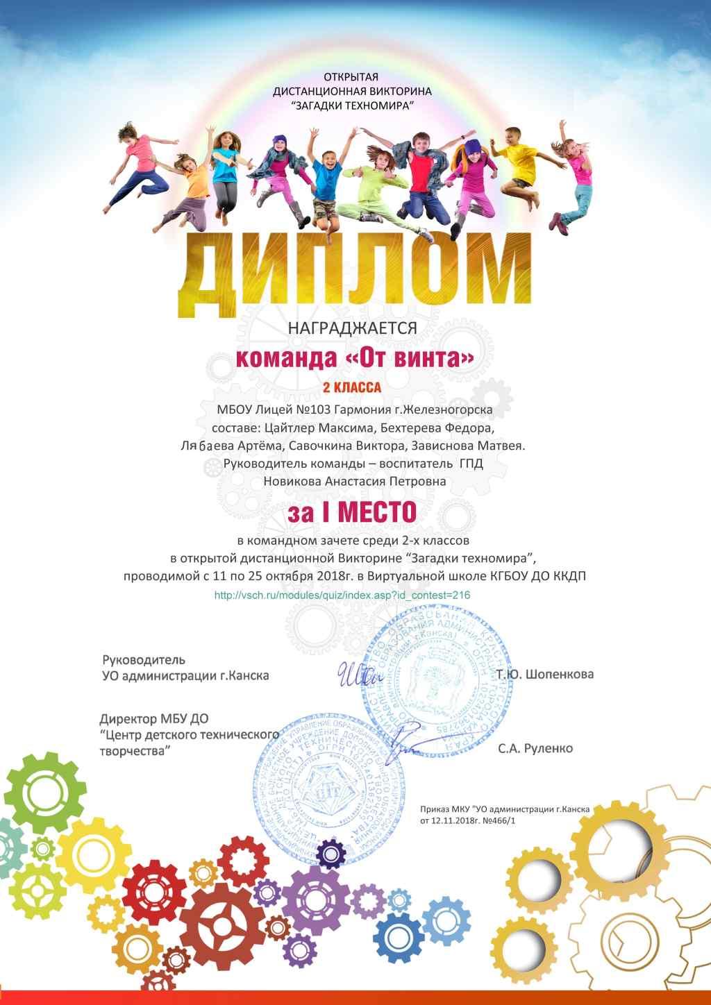 Открытая дистанционная Викторина по основам технического творчества «Загадки техномира» проходила с 11 по 25 октября 2018 года. Она состояла из 3 этапов: тест, мини-исследование существующих и будущих профессий и командный проект. Всего в Викторине приняло участие 373 школьника из разных городов Красноярского края: Железногорска, Красноярска, Канска, Кодинска, Козульского, Саянского, Ермаковского районов. Конкуренция была сильной!