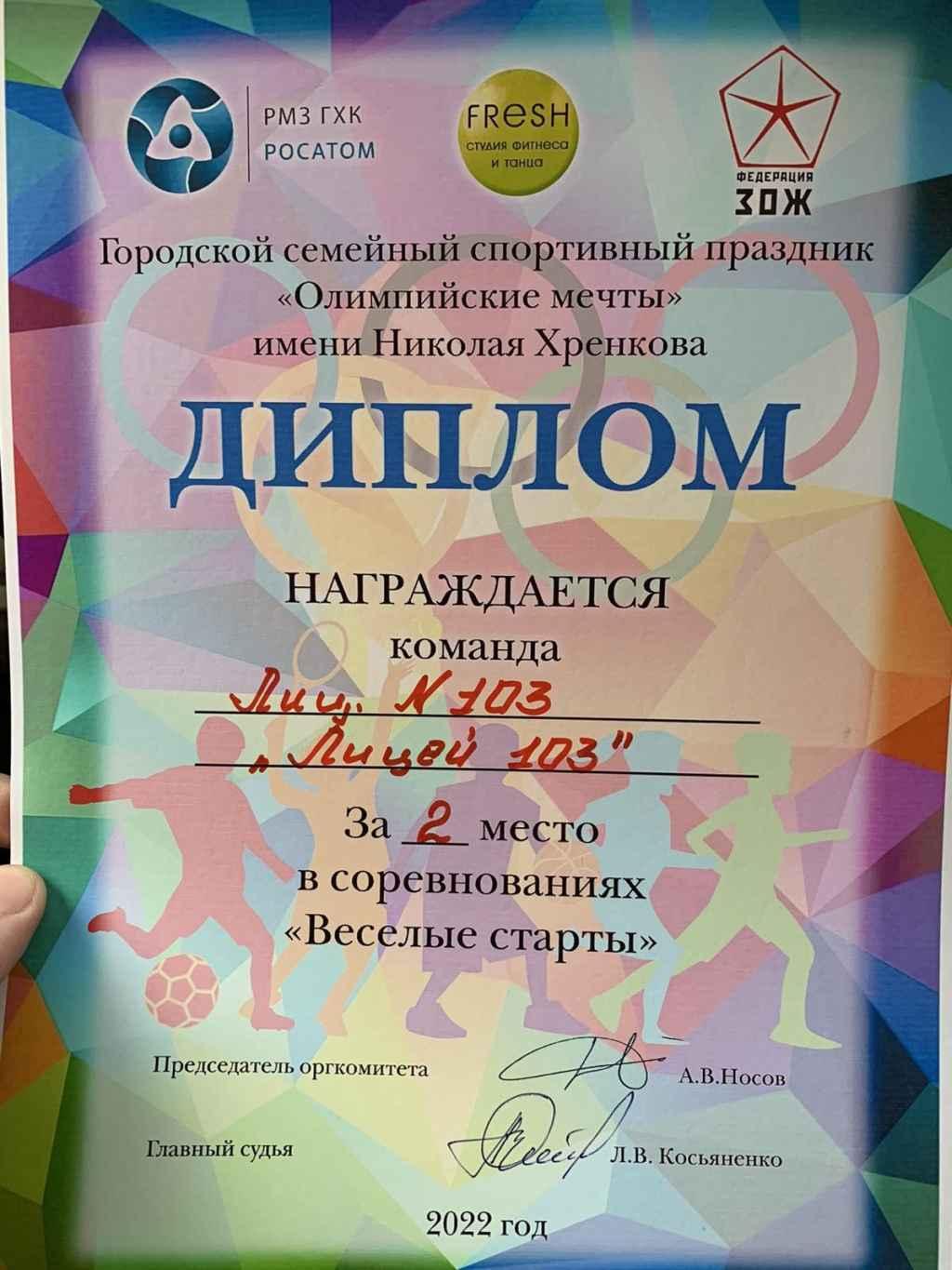 02.03.2022В эти выходные наша команда "Лицей 103", состоящая из учеников 5 "Д" и 4 "Л" классов и их родителей, приняла участие в городском спортивном празднике "Олимпийские мечты".