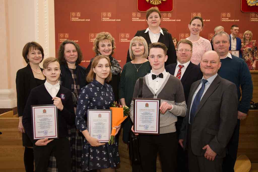 27 февраля заместитель председателя правительства Красноярского края Алексей Подкорытов вручил учащимся образовательных организаций Красноярского края свидетельства о присуждении краевых именных стипендий по итогам 2017 года. Свидетельства из его рук получили 35 одаренных школьников.